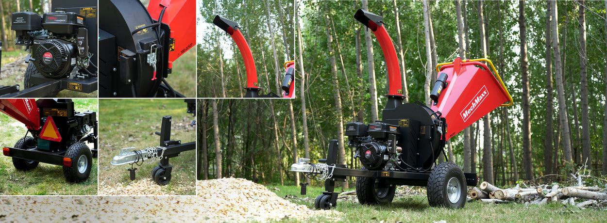 MechMaxx 5 inch E-start DUCAR 420cc 15hp Gasoline Engine Powered Disc Wood Chipper with Taillight, P4205
