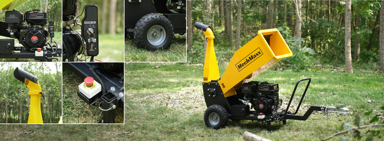MechMaxx 5 inch E-start DUCAR 420cc 15hp Gasoline Engine Powered Drum Wood Chipper with Towbar, PGS1500