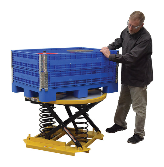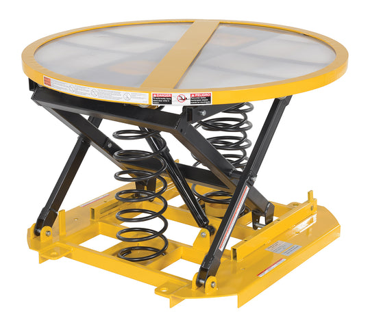 Vestil Steel Open Manual Carousel Top Spring Scissor Table 4,500 Lb. Capacity Black / Yellow