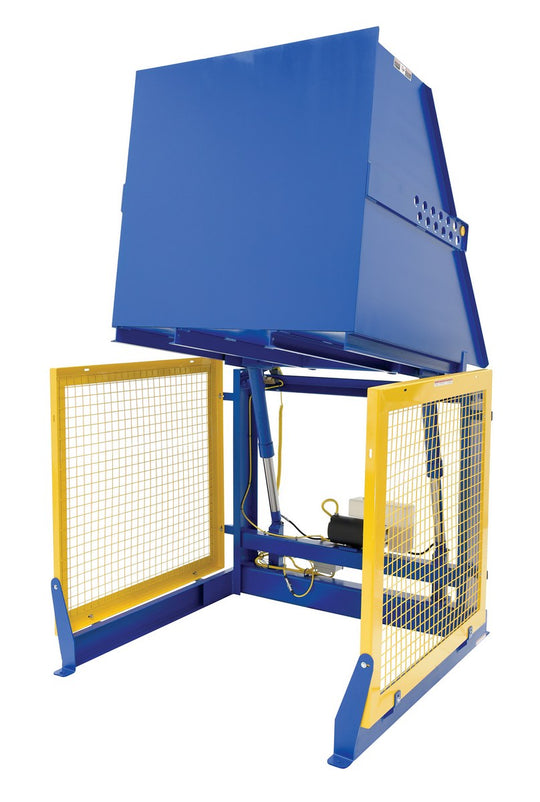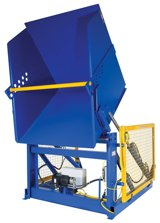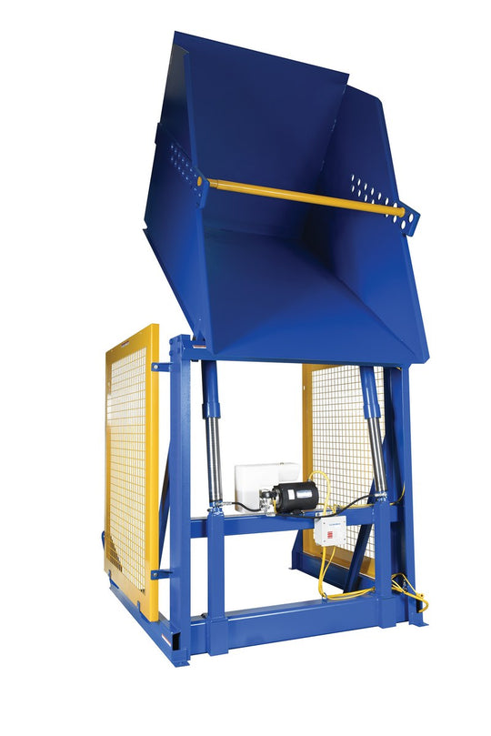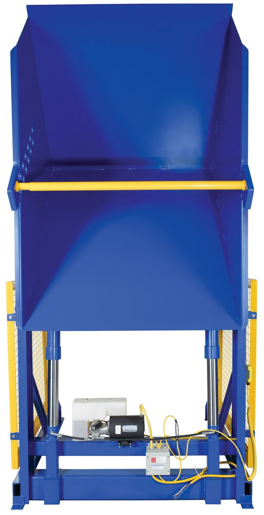 Vestil Steel Electric Hydraulic Box Dumper 48 In. Dump Height 4,000 Lb. Capacity Blue
