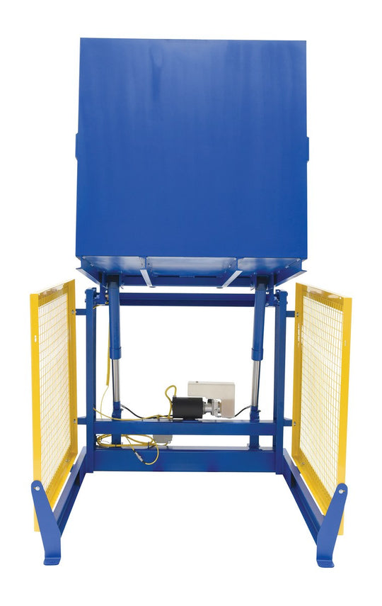 Vestil Steel Electric Hydraulic Box Dumper 60 In. Dump Height 4,000 Lb. Capacity Blue