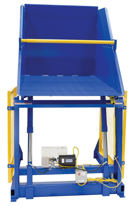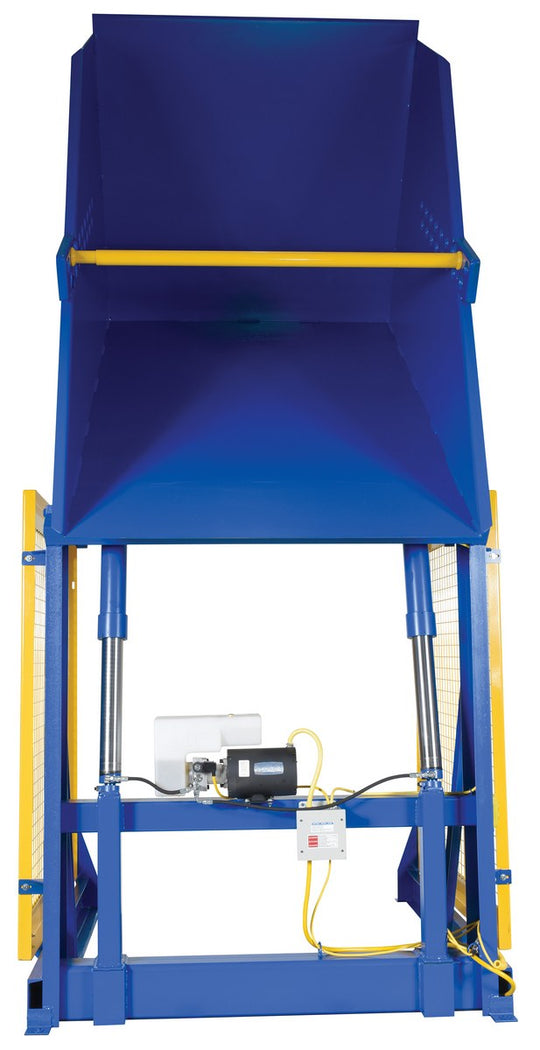 Vestil Steel Electric Hydraulic Box Dumper 48 In. Dump Height 6,000 Lb. Capacity Blue