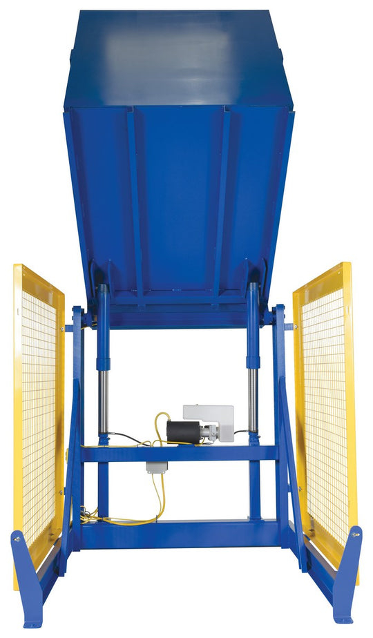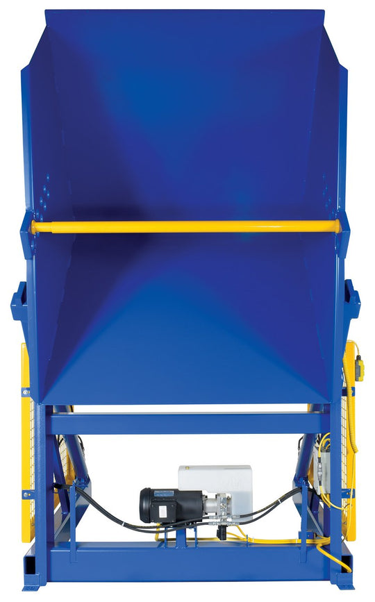 Vestil Steel Electric Hydraulic Box Dumper 36 In. Dump Height 6,000 Lb. Capacity Blue