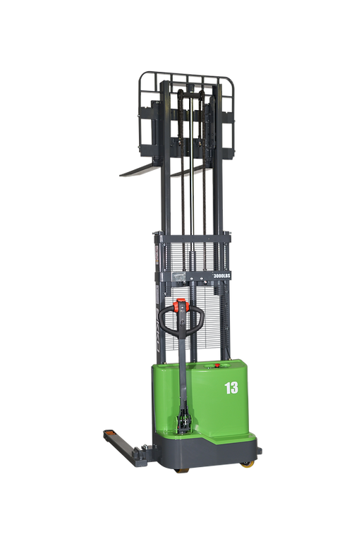 The EKKO EB13C-118Li Lithium Straddle Stacker is designed with the combination of the versatility of a forklift, reach truck and a walkie stacker. It is ideal for loading and unloading trucks, loading docks, stock rooms, manufacturing floors and warehousing.