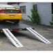 Load and haul cars, trucks and equipment onto trailers with this pair of lightweight 7' 10" L aluminum truck trailer ramps that feature a hook end and a knife foot with serrated rung traction.