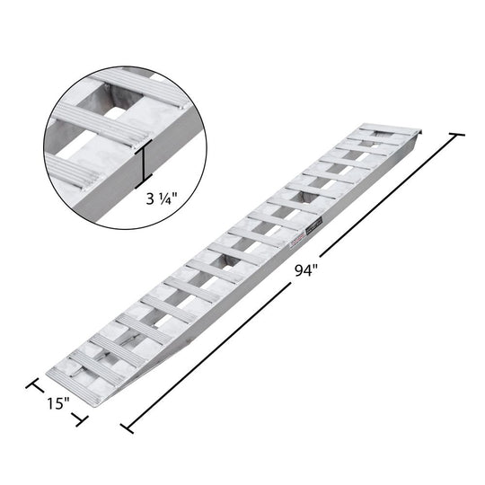 HD Ramps 4' L X 15" W Aluminum Car Trailer Ramps Hook End, Knife Foot- 5,000 lb. Per Axle