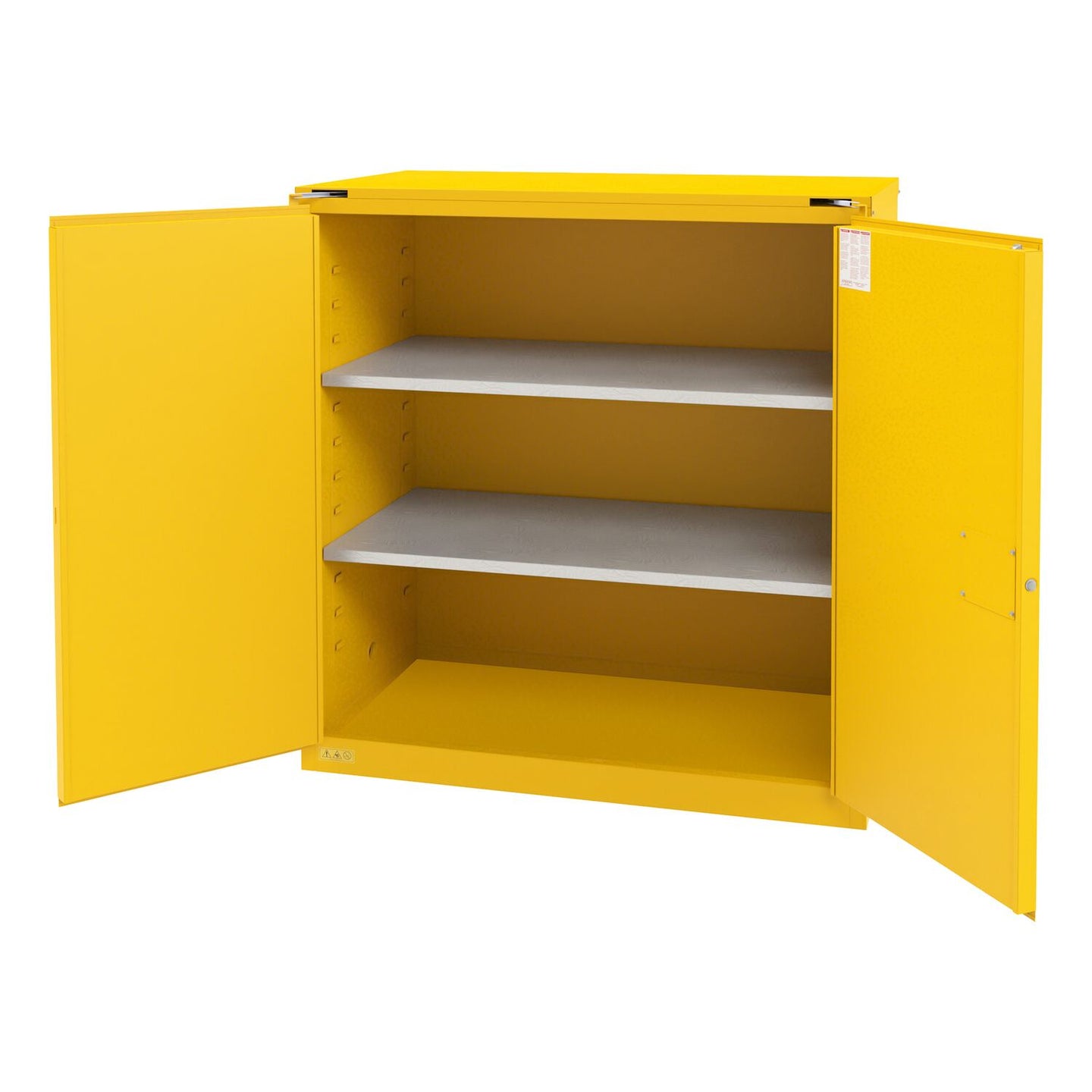 Keeping dangerous items safe is always a priority. Built to help with that safety is the flammable storage cabinet. A fully welded, double wall steel construction has the durability and strength that many standard cabinets just don't have. One of the best examples of the tremendous care that goes into each and every cabinet is the grounding aid. Each cabinet is equipped with an electrical ground to eliminate any electrostatic discharge. Another often over looked feature is the two inch leak proof base. This base neatly corrals any material or substances that may have escaped their original containers. Each cabinet comes assembled and prepared to keep you and your workplace safe!