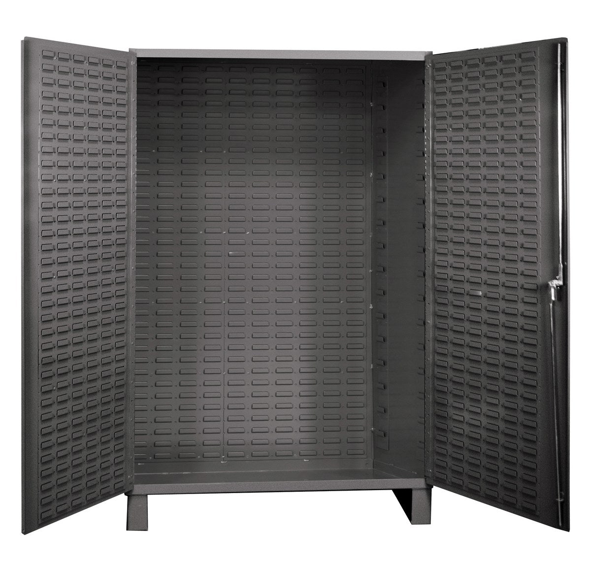 The bin storage cabinet is designed for high density storage and organization of parts. This cabinet offers easy accessibility to contents while maintaining cleanliness and security. Back and door louvered panels for customized configurations. Comes standard with keyed handle lock. Bins not included.