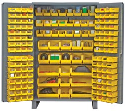 Vestil Steel/Plastic Storage Cabinet with 171 Yellow Bins 48 In. Width x 24 In. Depth x 78 In. Height Gray