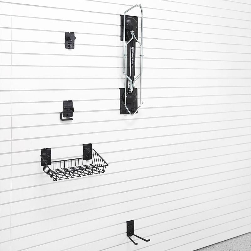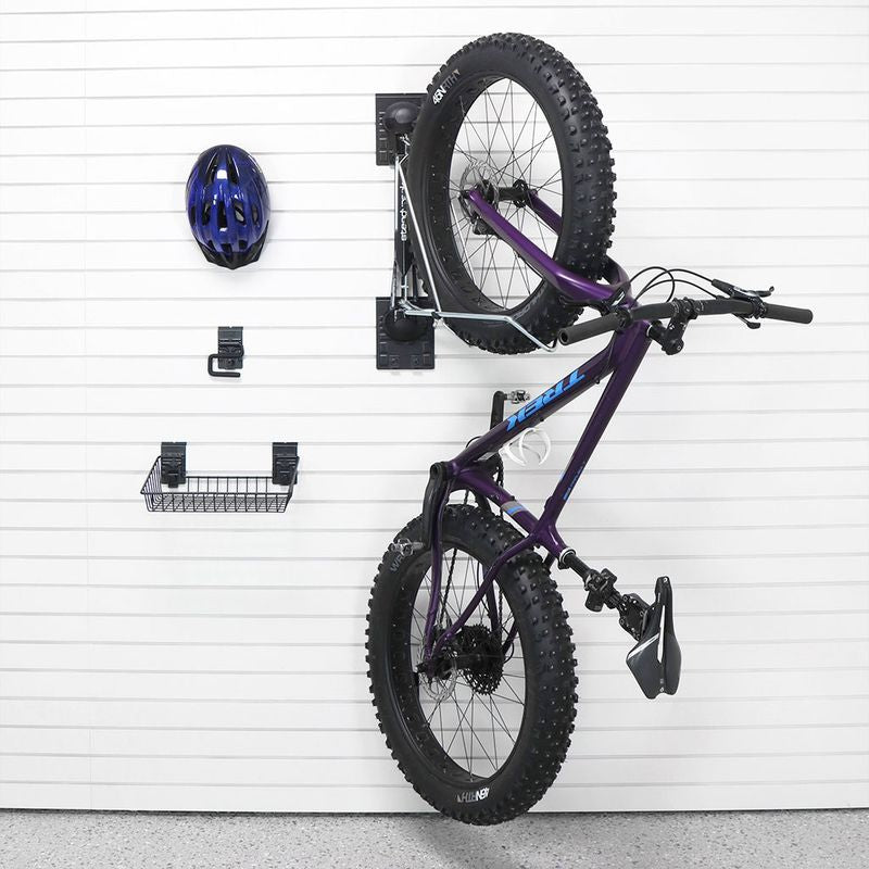 For bike owners with multiple rides, the Steadyrack Fat Tire Bike Rack offers the ideal solution for efficient organization on your slatwall. Designed to store fat tire bikes vertically, this rack maximizes space while ensuring safety and preventing damage. Its sleek black design adds a modern, stylish touch to any garage, seamlessly blending with your existing décor.
