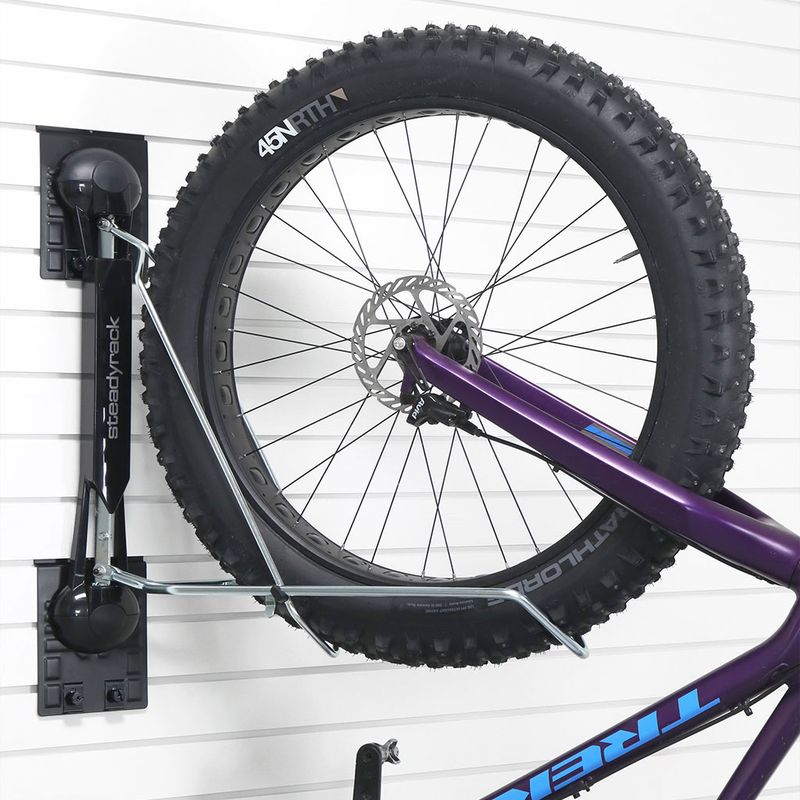 Elevate your garage storage with the Steadyrack Fat Tire Bike Rack, a premium slatwall accessory designed to maximize space and streamline your bike storage.
