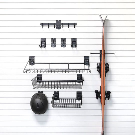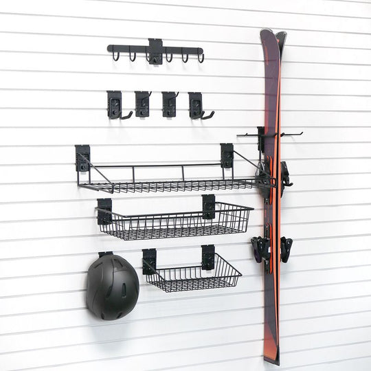 Medium Ski Storage Bundle: Includes 1 ski set holders. The Medium Ski Storage Bundle from Milwaukee Slatwall is your perfect solution for organizing winter gear in your garage. Designed with 10 premium accessories, this bundle offers...Regular price $349.99Regular price $349.99 -