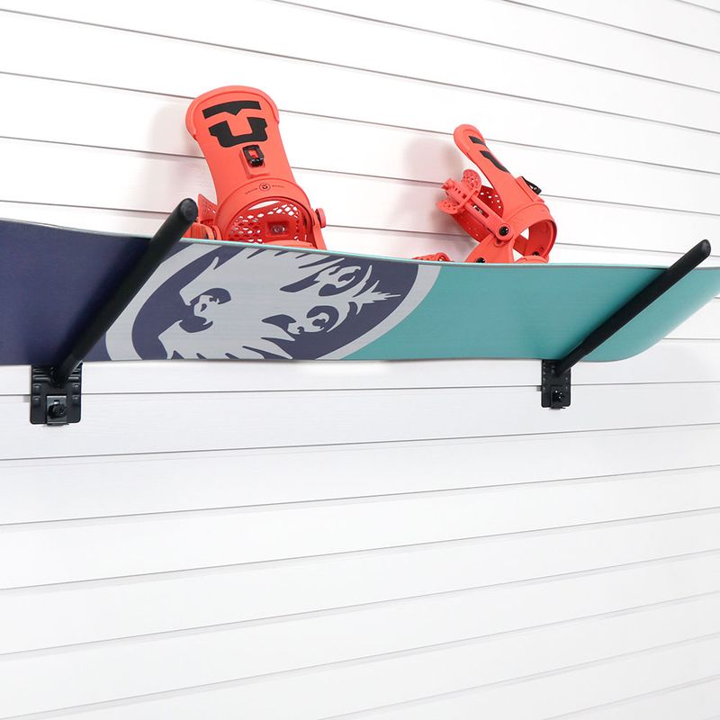 The 12″ Angled Hook Bracket is the perfect garage wall organizer for hanging large, bulky, or awkwardly shaped items securely. Whether you need a snowboard rack, skateboard holder, or weight storage, this slatwall-compatible bracket provides reliable support for sports gear, tools, and equipment.