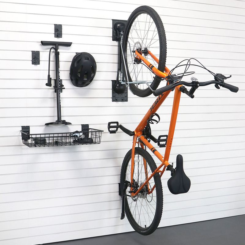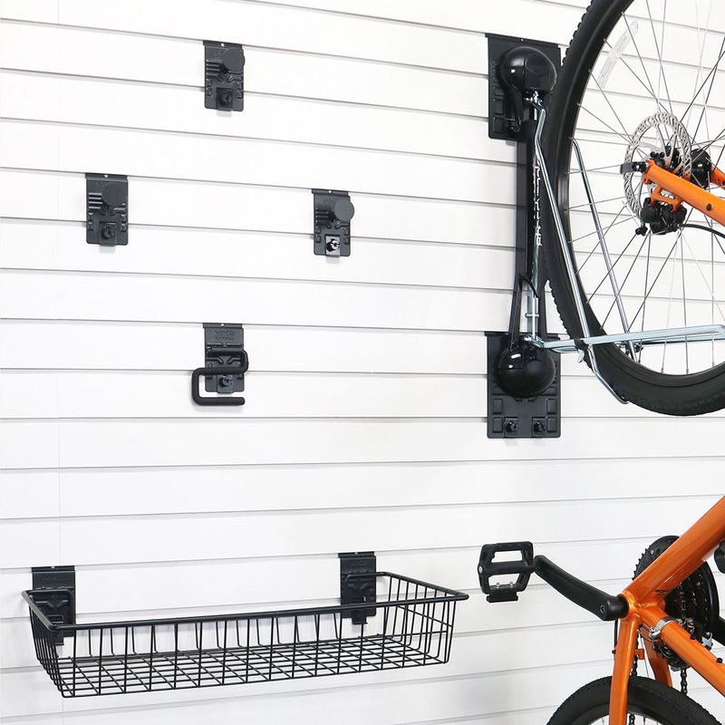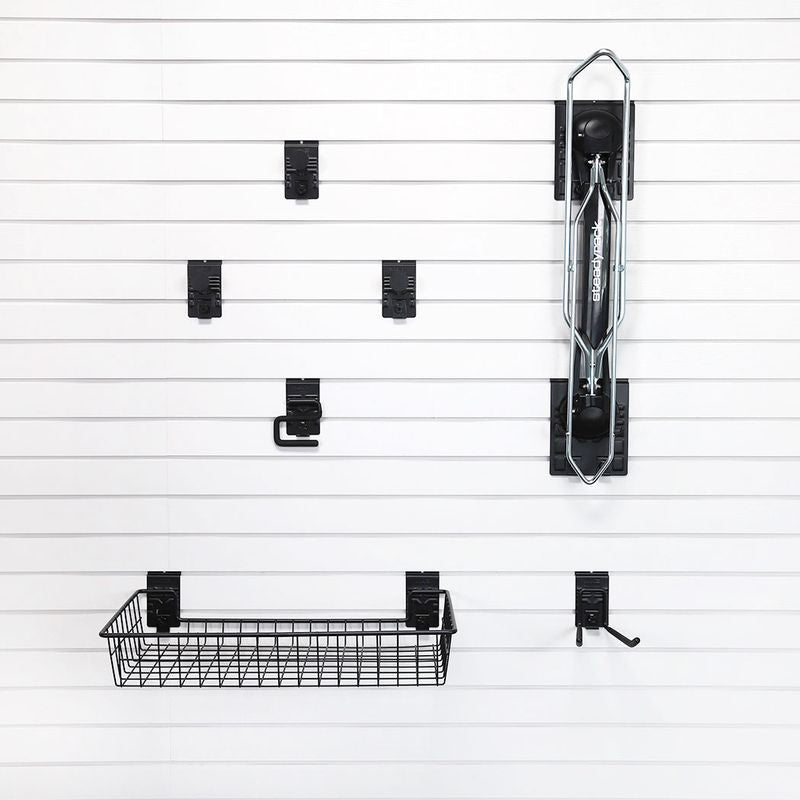 If you own multiple bikes, the Steadyrack Mountain Bike Rack offers an ideal solution for organizing them efficiently on your slatwall. By storing your bikes vertically anywhere on the slatwall, this rack maximizes space while ensuring they remain safe, secure, and free from damage.