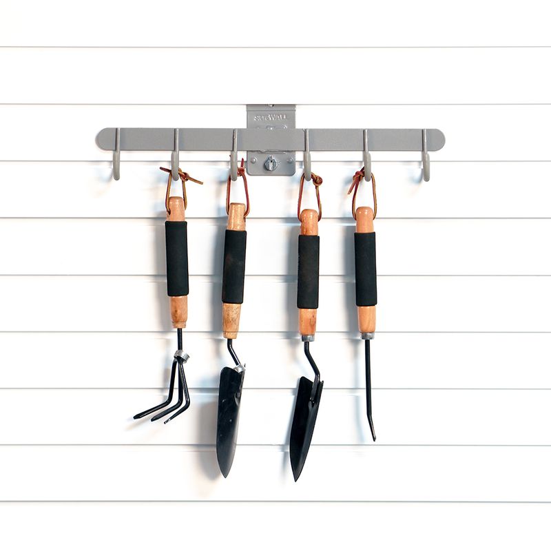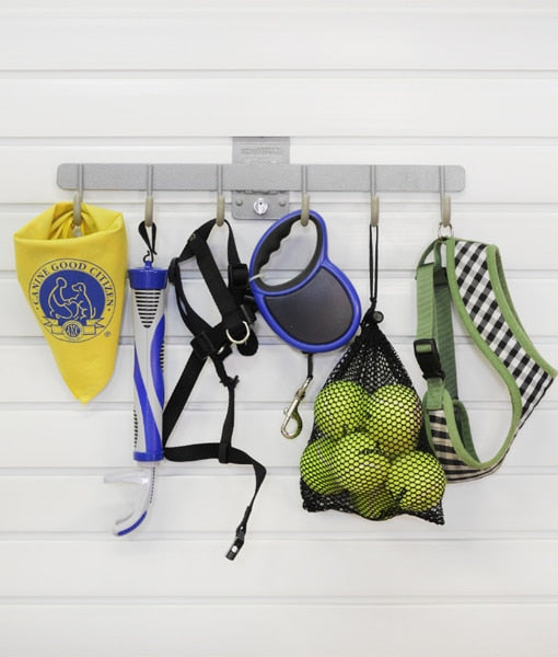 This garage storage Six Prong Hook is expertly designed to keep your items neat and tidy. Features soft-touch grips on hook ends to prevent scratches and damaging of items. Helps keeps items such as work aprons, tool belts and towels organized. Perfect for hanging up coats, hats, and more!