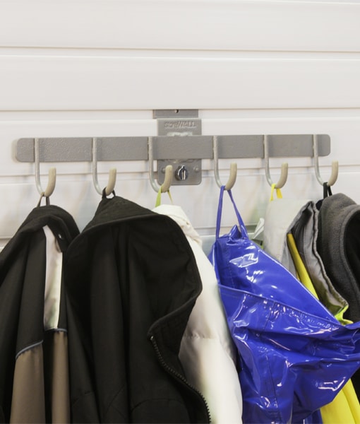 Our garage slatwall storage accessories feature our exclusive all-metal CamLok™. This amazing device helps keep accessories locked into the slatwall… until you decide to move them. An easy turn of the CamLok and your hook stays in position.  Nothing lands on the floor. Our Garage slatwall hooks are the best in the market for your slatwall job and garage organization project.