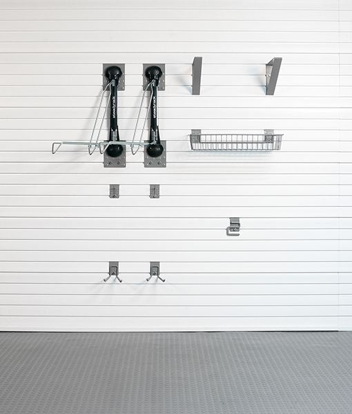 Each 15″ Bike Bracket: Maximum recommended weight capacity: 150 lbs. per bracket (wall panels installed with Installstrips)