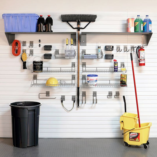 Maintenance Bundles combine all of the essential slatwall accessories that will help you organize your maintenance or industrial supplies, cleaners and tools. Deluxe Maintenance Bundle includes:2 – 48″ Metal Shelves2 – Large Wire Shelves2 – Small...Regular price From $449.99Regular price From $449.99 -