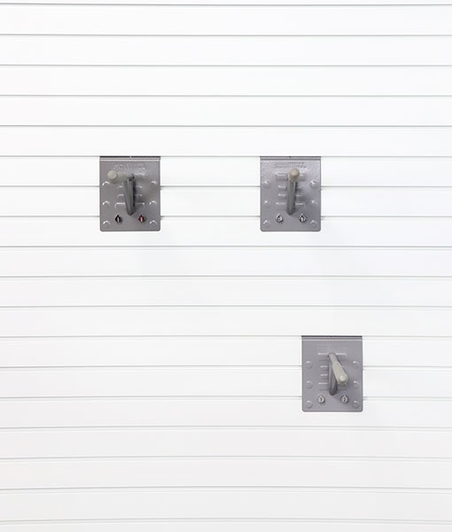 Our line of Ultra Duty accessories has the highest performance of any slatwall accessories in the market. With a 6 inch back plate, and a holding capacity near 200 pounds they can hold your heaviest, largest, bulkiest and hard to store items with ease. Get those large items off your floor and take back your garage. These live up to their name … they are ULTRA DUTY!