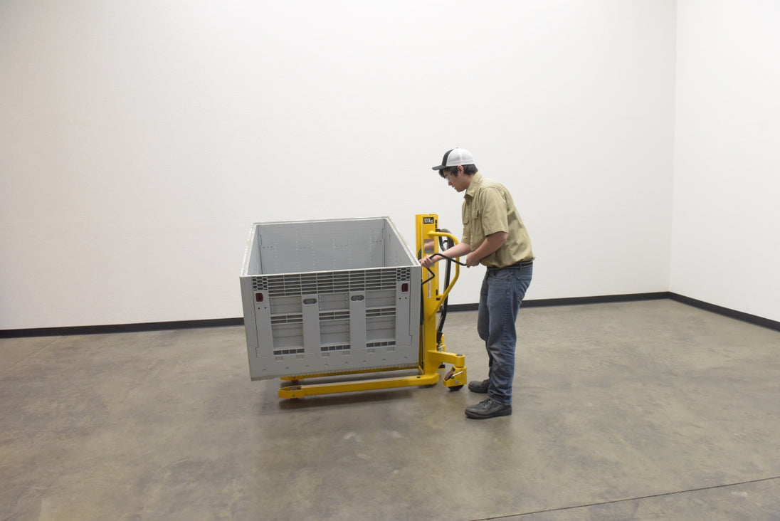 A lift and tilt pallet truck is an outstanding addition to a variety of production environments. The hand pump lever functionality gives the user control over the precise height movements of the forks. With a wide service range, items both large and small can be loaded and unloaded at a height that best fits the users preference. For items that may need added stability, the tilting function is available. The tilting function can be used up to 20 degrees tilt for extra steadiness. Steel construction with a powder coat finish for added baked in toughness. For use with open bottom pallets and skids only.