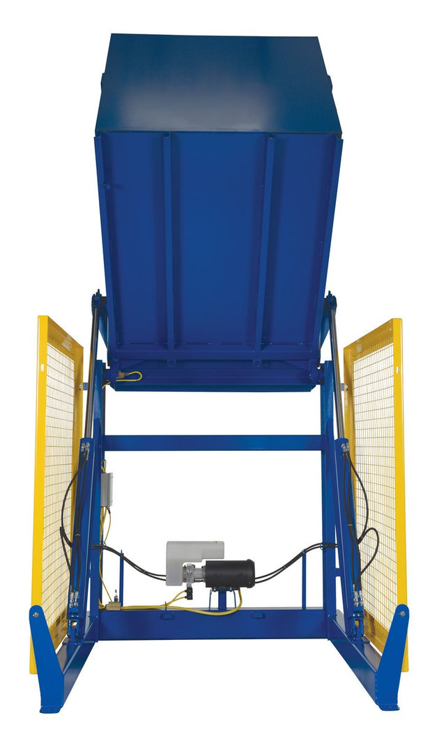 Vestil Steel Electric Hydraulic Box Dumper 60 In. Dump Height 4,000 Lb. Capacity Blue